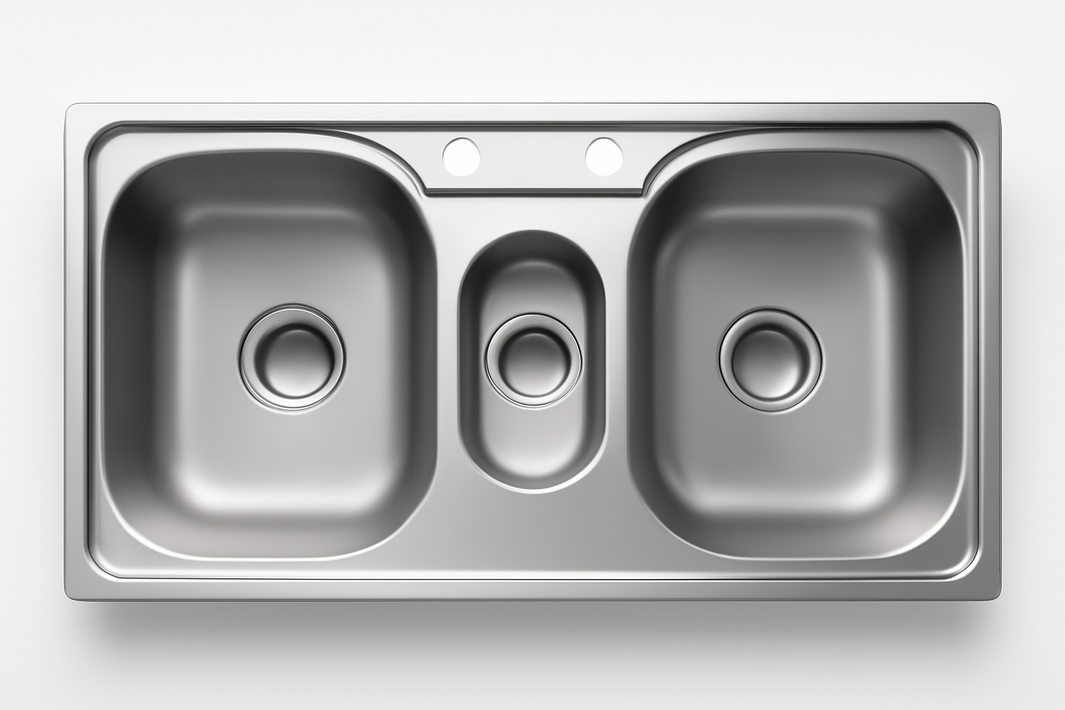 حوض مطبخ ثلاثي، يجمع بين العملية والأناقة الحديثة. يتميز بتصميمه الذي يضم حوضين جانبيين كبيرين وحوضاً وسطياً أصغر، ما يمنح مرونة كبيرة في أداء المهام المنزلية المختلفة مثل غسل وتنظيف الأطباق، وتحضير الطعام،...