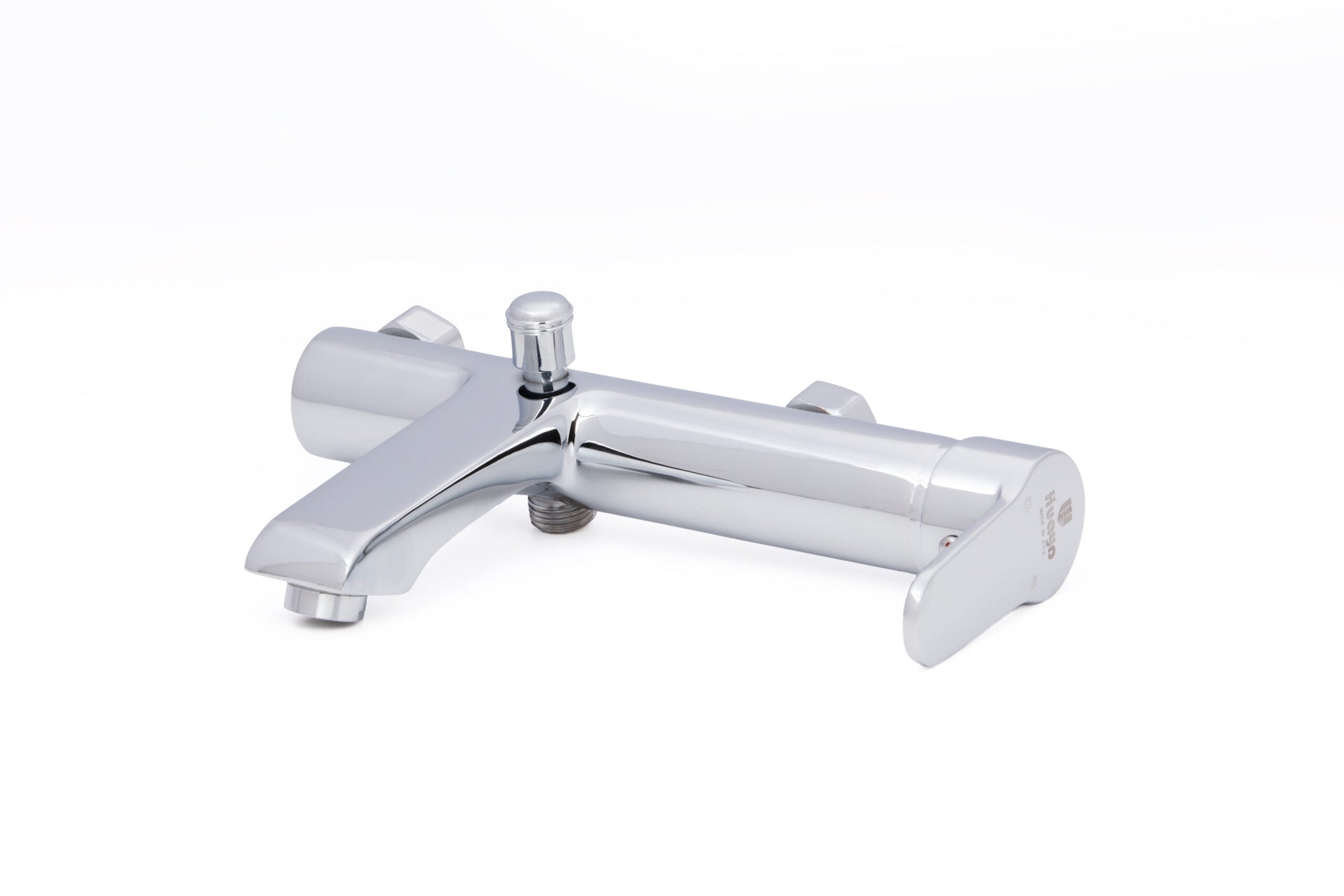 خلاط بانيو جداري مودرن كروم لامع من هاواي مصب أمامي ومخرج سفلي للهاند شاور تصميم اسطواني نحيف كود HY-30756