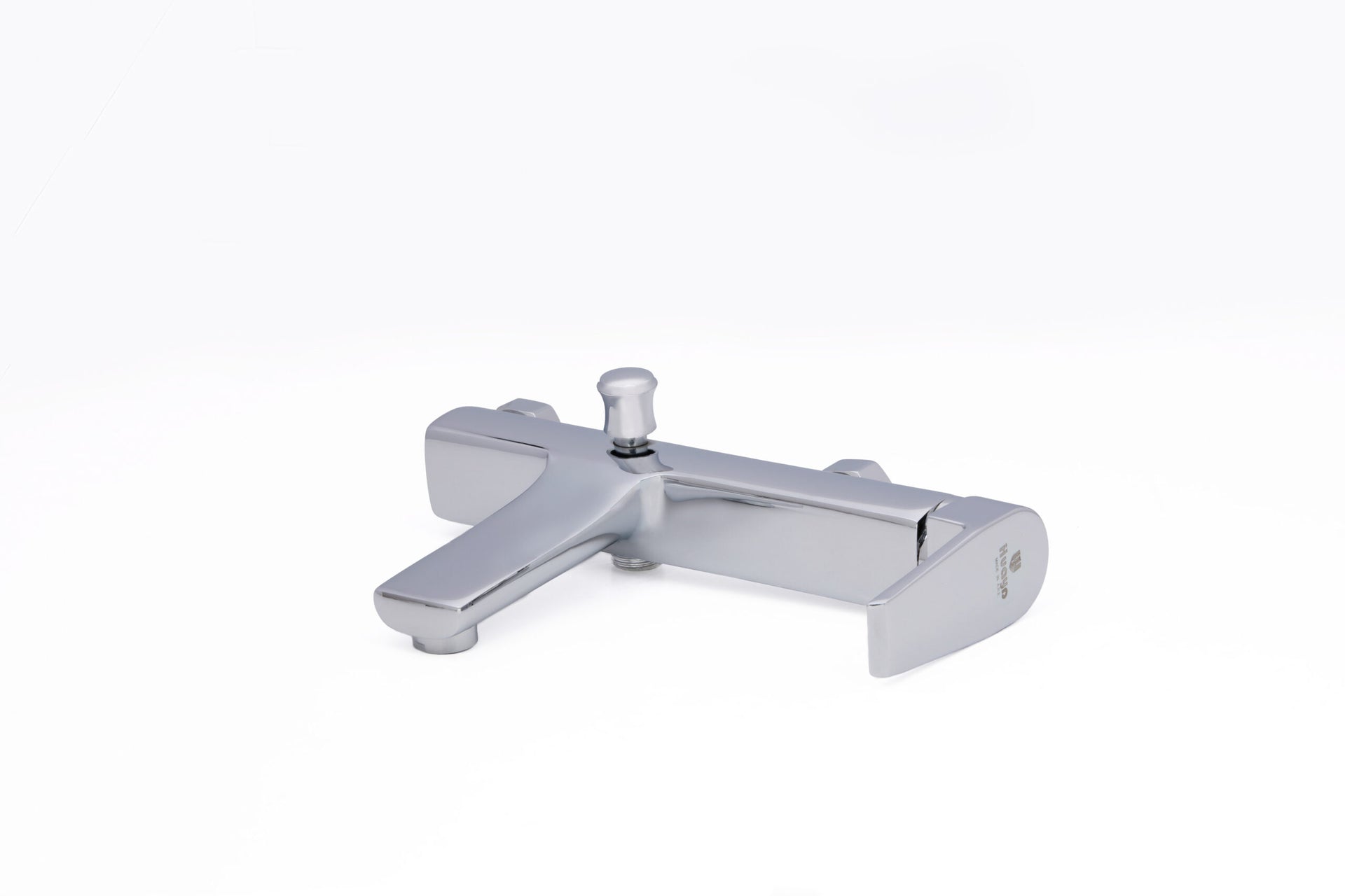 خلاط بانيو جداري مودرن كروم لامع من هاواي مصب أمامي ومخرج سفلي للهاند شاور تصميم هندسي أنيق كود HY-30756