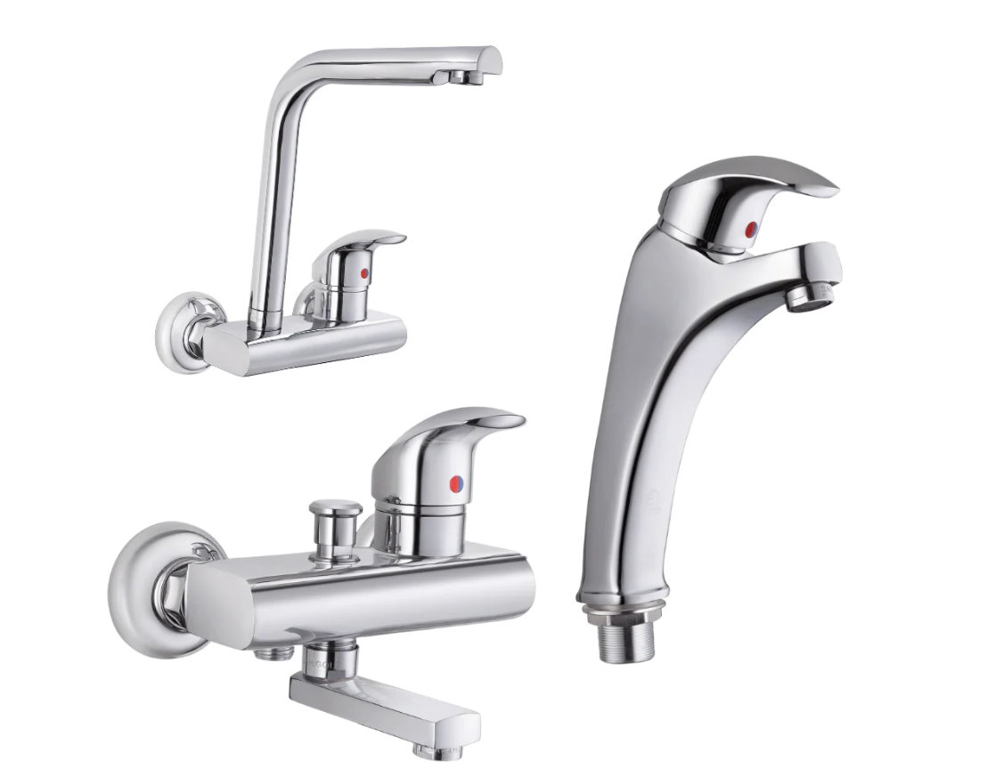 طقم خلاطات جولد موديل ايليت ( خلاط حوض 3034 و خلاط بانيو 3010 و خلاط مطبخ حائطى 3027 ) اللون كروم